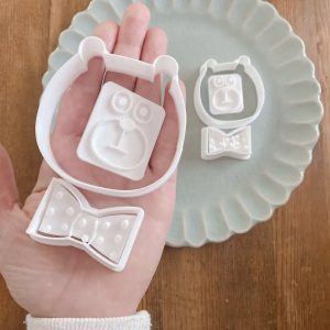 トムズクッキーズの看板キャラ、トムくんと水玉リボンクッキー型のセット販売となります。
